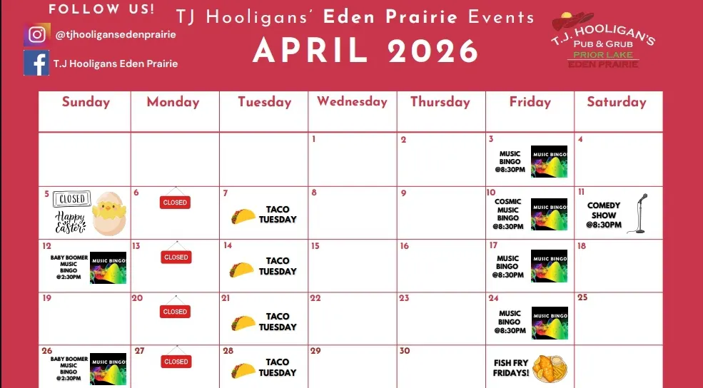 T.J. Hooligan's is Minnesota's home of Music Bingo. Music Bingo is free to play. Everyone gets a bingo card with song names in each box. We play 20-30 seconds of a song, you have to recognize the song and find it on your card. We give out more than 15 prizes each night. It's something you really have to experience in person. We guarantee it will be the most fun you will have all week!